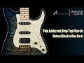 A healthy dose of Flame Maple glory on top of an incredibly lightweight chamered body! The S-style design is iconic for a reason, and this Anderson Drop Top is built on that tried-and-true platform, with a host of improvements. It starts with elements of vintage appeal paired with modern design, as well as, of course, the highest grade tonewoods available. The hand-wound Tom Anderson pickups convert the massive natural resonance and sustain into a full and balanced guitar tone in a versatile HSS configuration. A VA Booster / Coil Split was added for that extra layer of versatility and when an extra kick is needed. To complete the package, an insanely comfortable Happy Medium neck carve... it's fast, sleek and just right.